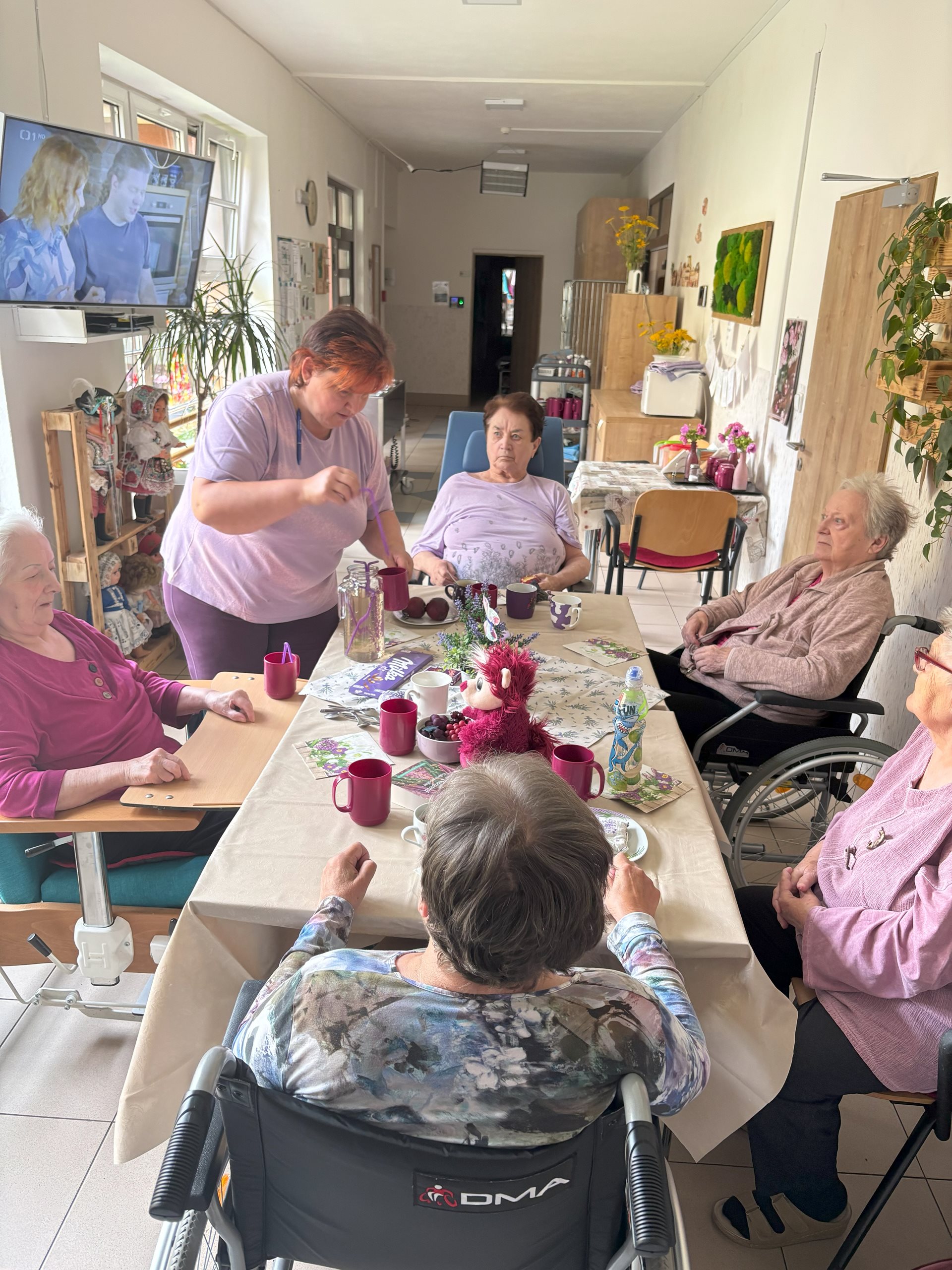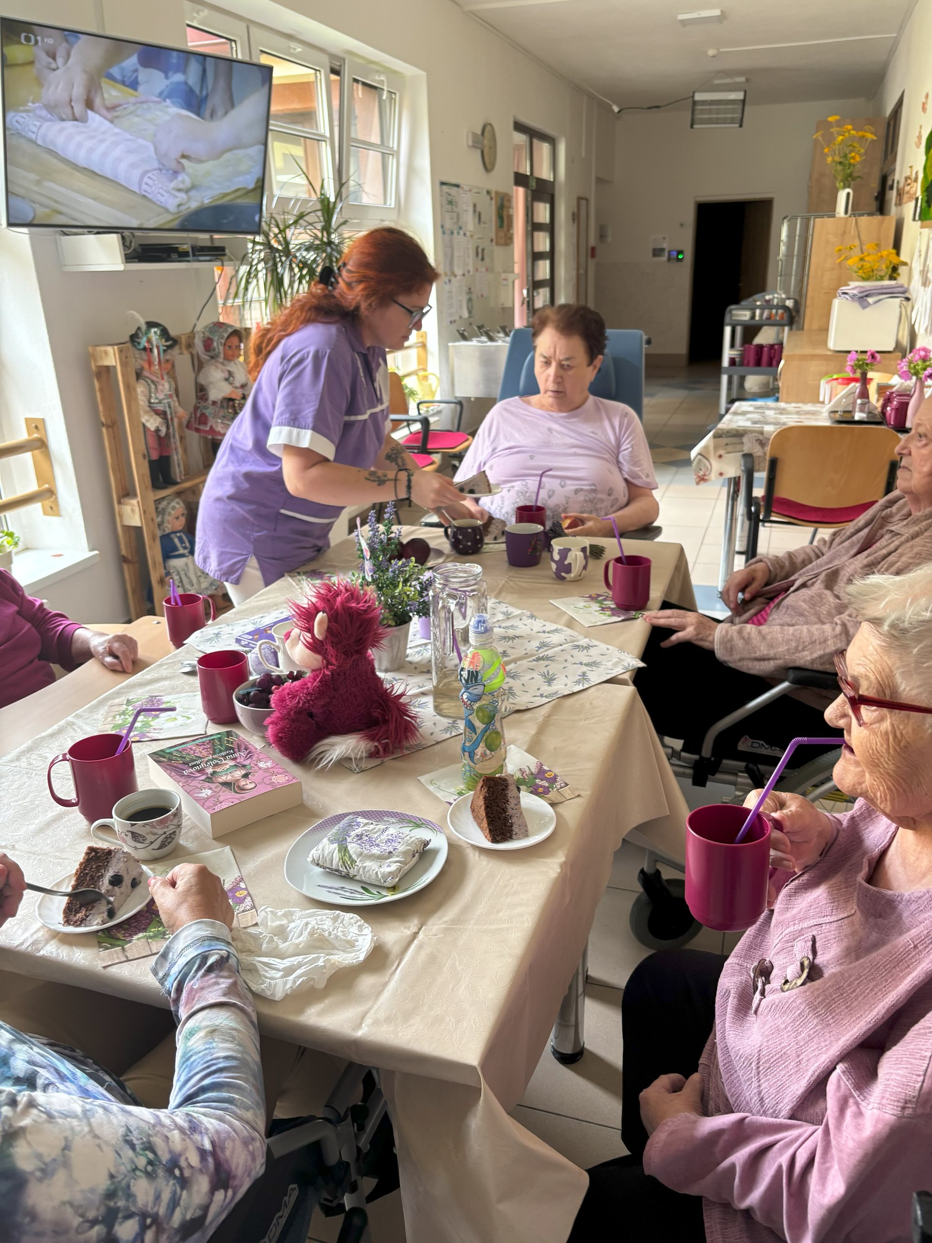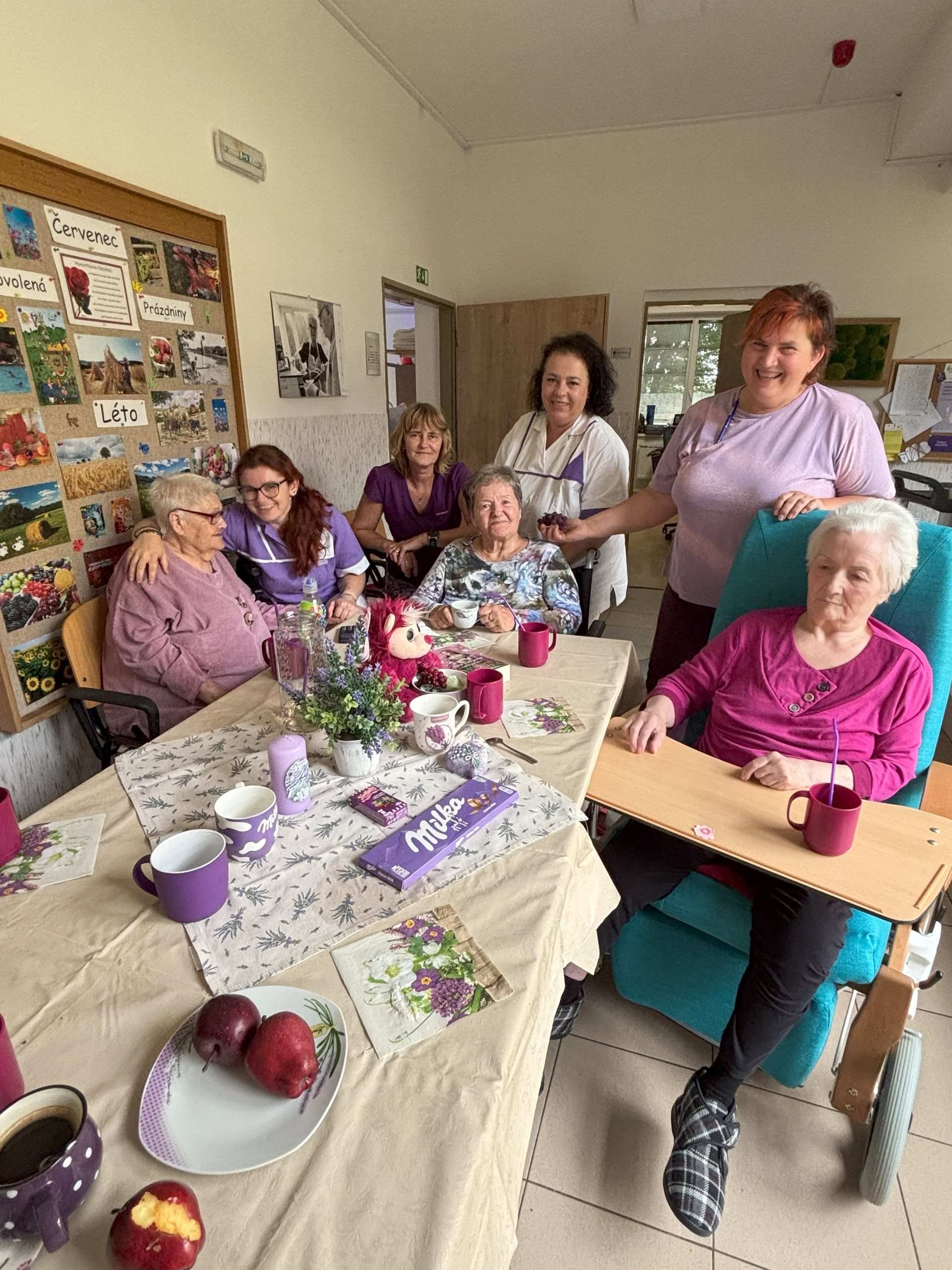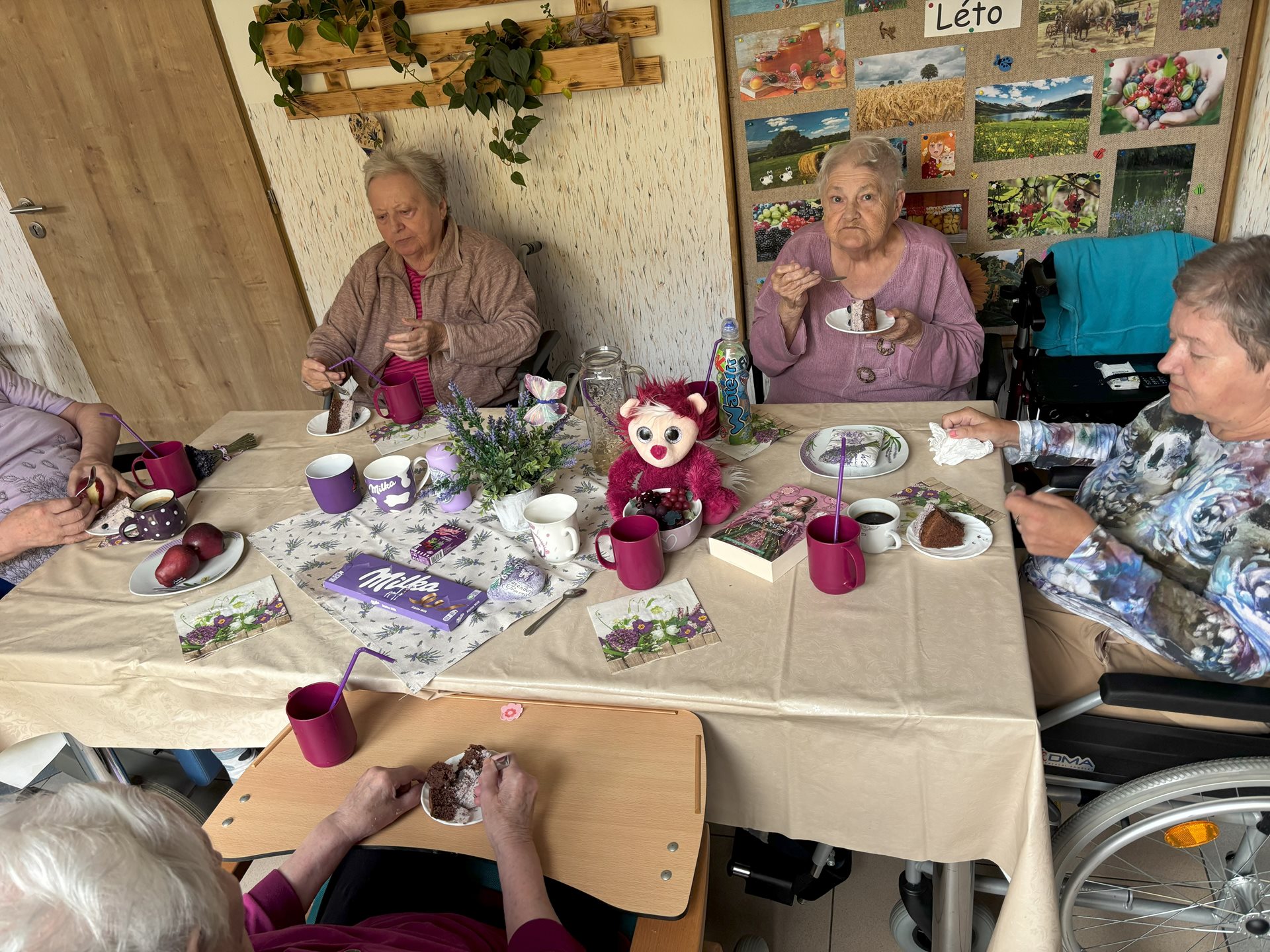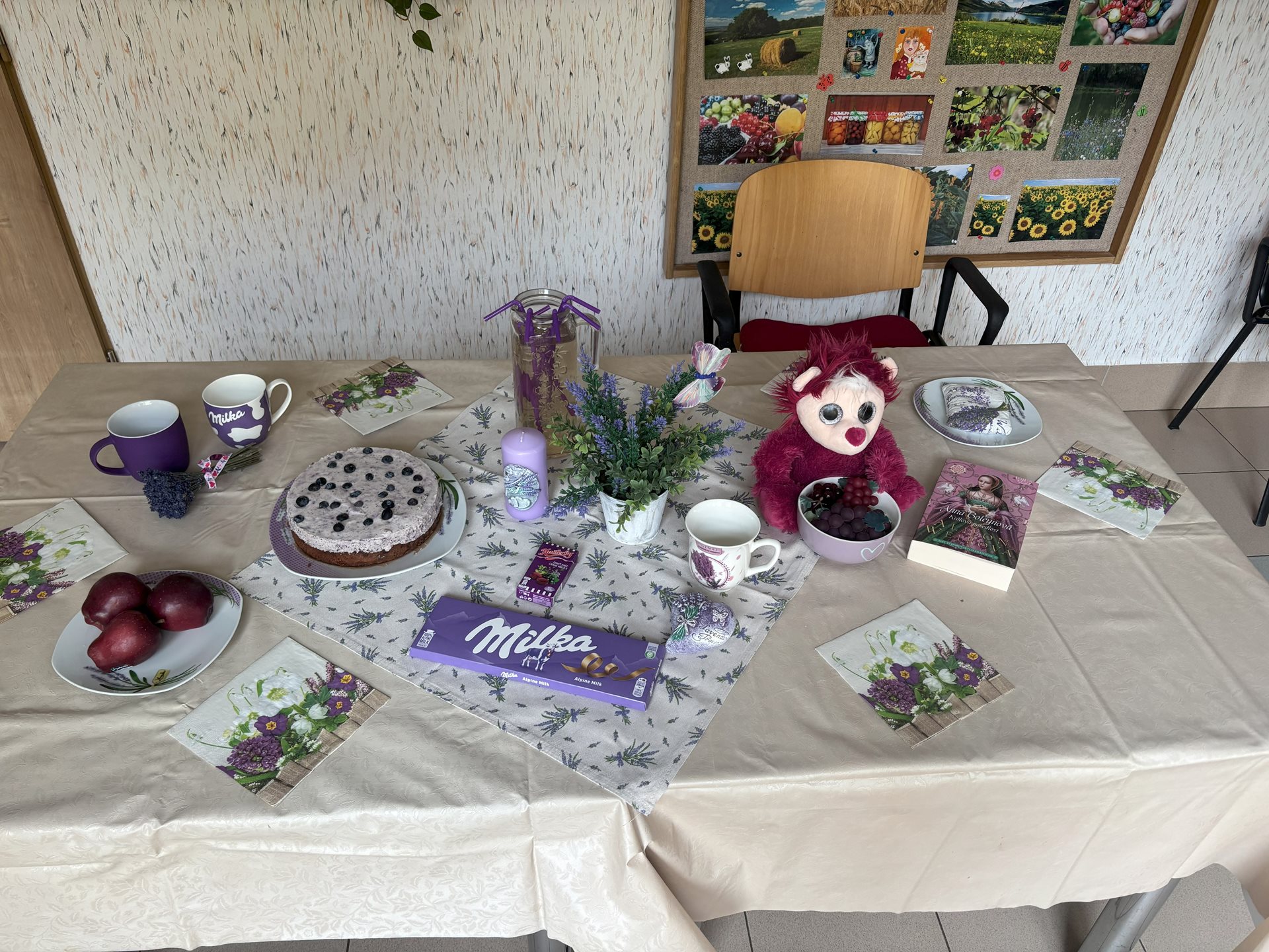 Fialové posezení na přípravu lehké není, s pomocí borůvek a levandule vše dopadlo skvěle. Klienti si pochutnali, dobře se bavili a i s personálem si to všichni užili.