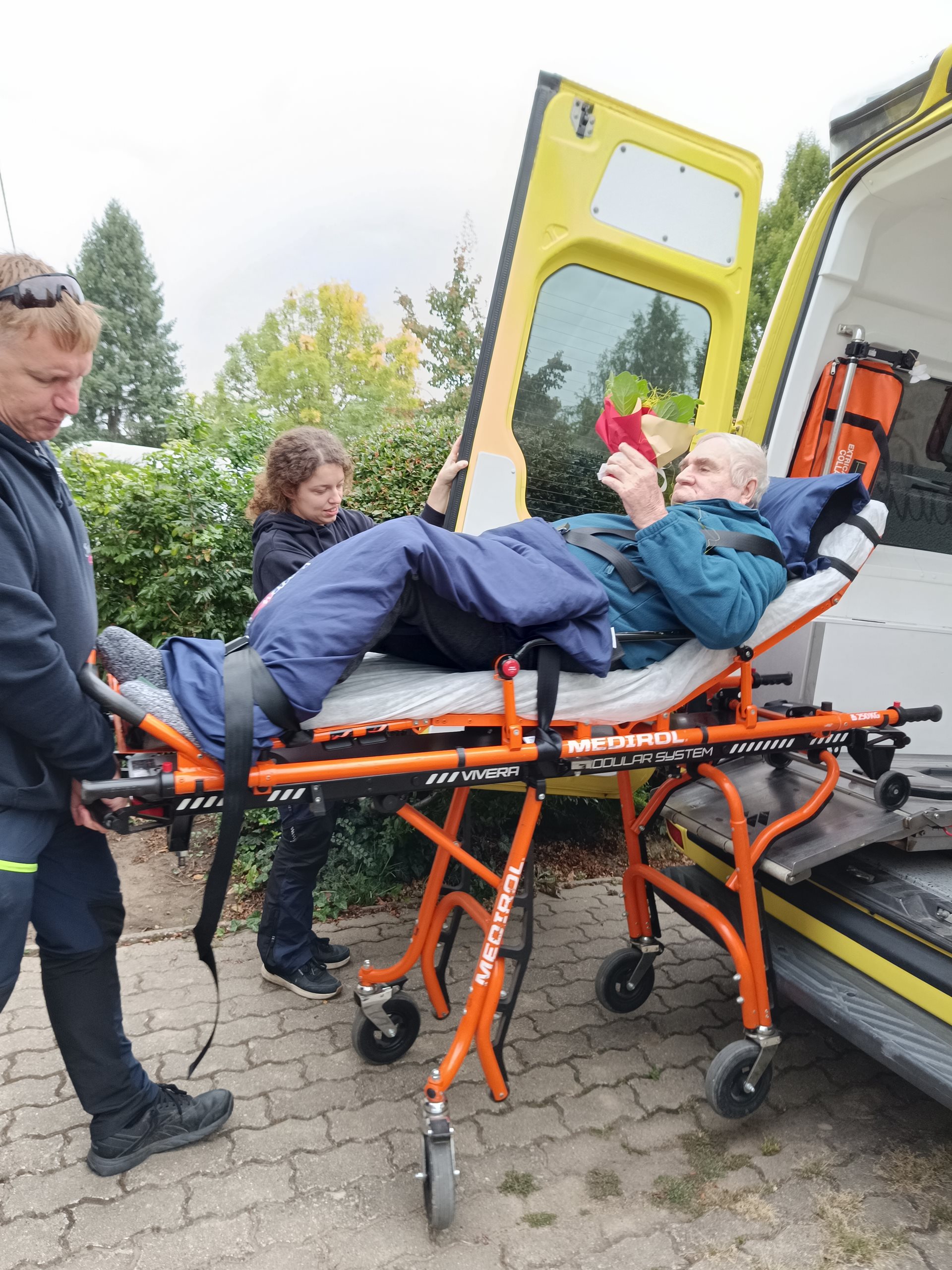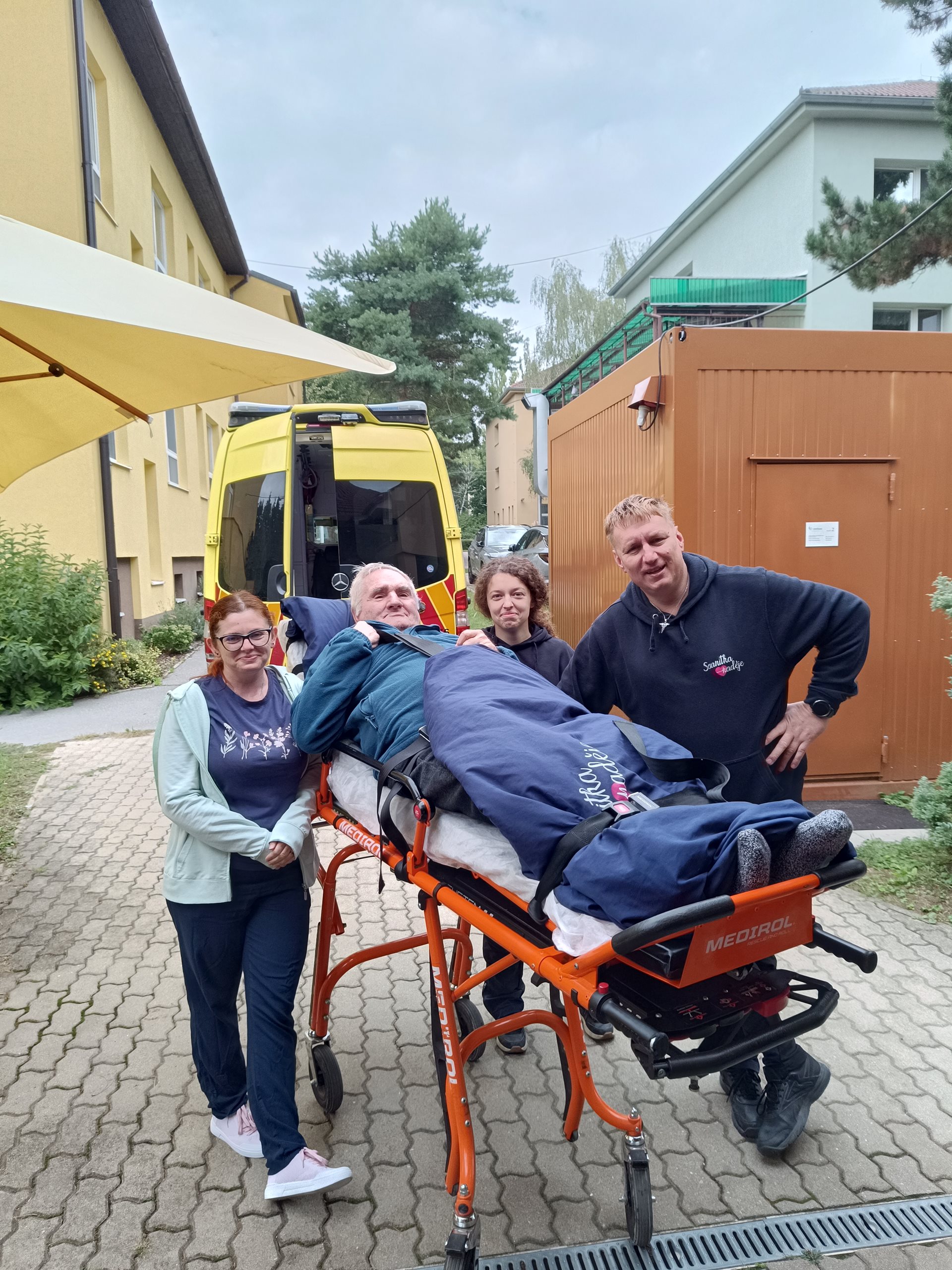 Sanitka naděje se náš klient podíval do rodné vesnice Rakvice, kde prožil celý život. Navštívil svůj rodný dům i hřbitov a zapálil svíčku na rodinném hrobě. Také se podíval do vinohradu své sestry, kde ochutnal čerstvě utržené hrozny. Poslední zastávkou byla prohlídka vodní nádrže Nové mlýny. Nejkrásnější bylo opětovné setkání s dobrým kamarádem a po dlouhé době i čas strávený se sestrou. Děkujeme všem za pomoc při plnění přání.